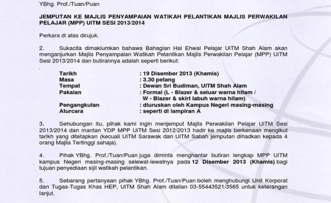 14 contoh surat rasmi tidak hadir ke kuliah uitm.